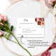 Elégante carte RSVP avec des détails floraux couleur rose vif, ivoire, pêche, or rose bordeaux et rose couleur aquarelle poussiéreuse à l'avant et à l'arrière. Elégant arrière - plan bleu poussiéreux à l'avant. Possibilité d'ajouter des options de repas ou de les supprimer. Une partie de notre collection de mariages et événements "Ciel en Rose et bleu poussiéreux".