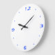 Une horloge murale bleu et blanc très sobre. Blanc avec chiffres bleus royaux et mains noires, cette horloge est disponible en forme carré ou ronde. personnaliser pour changer la taille et la forme.