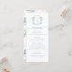 Bleu clair Floral Crest Mariage Menu Cartes