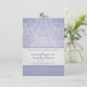 Belle Faire-part de mariage bleue damassée formelle. Modifiez cette invitation avec vos mots. Panneaux blancs de Chine pour vos mots et orné d'une patte botanique kangourou originale avec arrière - plan de motif damassé de coeurs. Conception par Sarah Trett.
