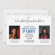 C'est une invitation à la fête de remise de diplômes en bleu et blanc avec des couleurs modifiables. La photo peut être changée. Les couleurs peuvent aussi être changées pour d'autres écoles.