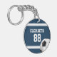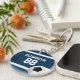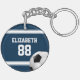 Parfait pour le fan de football ou le joueur de football dont les couleurs de l'équipe sont bleu foncé et blanc, avec un style maillot de football en bleu foncé avec des rayures blanches et du texte personnalisable pour leur nom et leur numéro. Un ballon de football est également présenté dans le cadre du design.