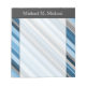 Ce bloc-notes est composé de rayures colorées de différentes nuances de bleu et de gris. Il comporte également un nom personnalisé en haut.