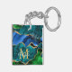 Cette porte - clé est décorée d'un élégant arrière - plan en marbre d'agate bleu et vert glamour aux accents de parties scintillant en faux or. Le monogramme combine écriture manuscrite et polices sans serif modernes pour un look élégant et sophistiqué. Cela fera le cadeau idéal car il peut être customisé avec un nom et une initiale. Les paillettes et la texture en mauvais état créent un mélange parfait de chic et de grunge.