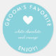 Un autocollant simple pour les faveurs de mariage avec "le favori de Groom" écrit en blanc sur un simple arrière - plan bleu. L'idée est que vous utilisez ces autocollants pour décorer vos faveurs de mariage en donnant, par exemple, deux barres-bonbons ou des bouteilles miniatures d'alcool qui sont les favoris du couple mariage. Cela fonctionnerait également bien pour décorer son cocktail préféré, dans le cadre d'un buffet de bonbons ou pour décorer des boîtes de cupcakes/desserts. Vous pouvez modifier la couleur de l'arrière - plan à votre convenance et modifier le texte pour qu'il corresponde à l'élément que vous utilisez, y compris l'orthographe de votre choix de "favori". Vous pouvez également changer le "savourez" en un petit message de remerciement ou le supprimer entièrement pour faire plus d'espace pour décrire votre objet. Vous pouvez également changer le nom en "favori de la mariée", "favori de Jamie" ou "son préféré" si vous préférez.