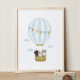 Bleu Hot Air Balloon Chiens Coiffure Poster
