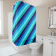 Un rideau de douche avec un design motif cool de rayures diagonales en bleu marine, bleu cobalt, bleu ciel, turquoise menthe glacée et bleu turquoise clair.