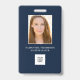 badge d'identification photo de l'employé bleu de la Marine avec logo de l'entreprise. Remplacez la photo par la vôtre et modifiez le texte. Facile à ajouter le logo de l'entreprise. Un badge d'employé simple et moderne.