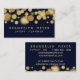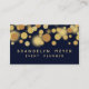 Caractéristiques de conception ce à la mode élégantes modernes un motif de point de bokeh d'or avec un arrière - plan de bleu marine. Personnalisez ce carte de visite avec votre propre information sur l'avant et le dos. Ces cartes fonctionnent bien pour des organisateurs aussi bien que des artistes créatifs tels que les concepteurs. Ce sont également grands pour des médias et la conception web numériques.