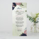 belle rose et bleu marine fleurs verdure mariage botanique menu.