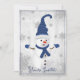 Invités Invitations à votre fête de vacances avec cet Invitation festif Blue Cute Snowman Christmas Party. Le design Invitation présente un mignon bonhomme de neige dans un casquette, foulard et gants ornés de flocons de neige gris et blanc contre un arrière - plan gris grunge. Personnalisez avec vos détails de fête et RSVP. Autres cadeaux et objets de vacances disponibles avec ce design aussi.