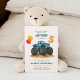 Monster Truck Invitation Anniversaire - parfait pour votre petit coureur! Cet invitation modifiable et imprimable est doté d'un camion bleu peint à la main, de ballons et de drapeaux de course. Idéal pour les thèmes de bash monstre ou de course automobile. Personnalisez-vous pour n'importe quel âge et fêtez avec un camion plein de plaisir!