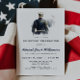 Cette invitation à la retraite présente l'image et la silhouette d'un fier officier de la marine. Cet invitation est parfait pour toute célébration de la retraite militaire. Le libellé est complètement modifiable pour ajouter votre touche personnelle,