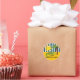 Invitation à la fête d'anniversaire et merci note autocollant avec un joli alligator, palmier, et soleil jaune, contre un arrière - plan rayé bleu et blanc. Ajoutez votre texte à l'aide des espaces fournis. Si vous souhaitez un contrôle plus créatif, utilisez le bouton "Customiser" pour changer la police, la taille et la couleur.