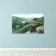 Blick auf Schneeschuhe über Zugschienen in Bergen Leinwanddruck