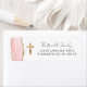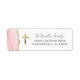Auf der links Seite dieses eleganten, modernen Retourenlabels befindet sich eine mit goldenen Imitaten bestickte, rot-rosa Aquarellgrenze, die mit einem vergoldeten Imitat-Folienkreuz bestickt wird. Passen Sie den Text mit dem Namen Ihrer Familie in handgeschriebenen handgeschriebenen handgeschriebenen Holzkohle-Schriftzeichen an und Ihre Adresse im Schriftart mit Kupferplatte auf weißem Hintergrund. Ideal für die Erste Kommunion eines Mädchens.