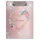Blindpink Blütensilber Glitzer Monogramm Klemmbrett