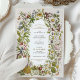 Célébrez le début de votre histoire d'amour avec notre Faire-part de mariage de sauvegarde des lisses botaniques. L'illustration complexe sur le devant de l'invitation présente une cornucopie de flore et de faune, avec un mélange harmonieux de teintes pastel et vibrantes allant du rose pâle, vert sauge, jaune beurré à la lavande douce, bleu ciel et beige chaud. Le dos de la carte complète le devant par un riche motif botanique, avec des papillons délicats qui flottent parmi un éventail de fleurs en fleurs et de baies mûries, évoquant un jardin en pleine floraison. Cette invitation n'est pas seulement une faire-part, mais aussi un garant de l'enchantement de la nature.