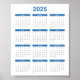 Bliue and White 2025 Year at a Glance Calance Poster