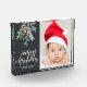 Bloc de photo de vacances comportant le brosse-manuscrit qui indique le "Joyeux Noël" et comporte des baies et des brins d'aquarelle.