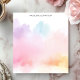 Ajoutez une touche de couleur rêveuse à votre journée avec ce bloc-notes personnalisé. Le design comprend un lave-eau doux et fluide dans une palette arc-en-ciel pastel. Ce design abstrait et artistique crée un cadre unique et apaisant. Customisez ce bloc-notes avec votre propre texte. Parfait pour les notes créatives, la journalisation ou tout simplement l'illumination de votre bureau.