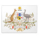 Ce design présente les armoiries australiennes. L'Australie est un pays souverain comprenant le continent australien, l'île de Tasmanie et de nombreuses petites îles. La capitale australienne est Canberra et sa plus grande ville est Sydney. Les autres grandes zones urbaines du pays sont Melbourne, Brisbane, Perth et Adélaïde. Les armoiries de l'Australie, officiellement appelées armoiries du Commonwealth, sont le symbole officiel du Commonwealth d'Australie. Un bouclier, représentant les symboles des six états australiens, est tenu par un kangourou et un ému, tous deux animaux originaires d'Australie. L'étoile du Commonwealth à sept branches au-dessus de la crête représente également les États et territoires australiens, tandis que divers emblèmes floraux apparaissent sous le bouclier.