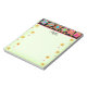 Profitez de votre amour de la courtepointe avec ce bloc-notes avec un en-tête de bloc de courtepointe noire en haut et customisé avec votre nom sous l'en-tête. Un grand cadeau pour vos amis de quilter. Quilt art est basé sur les blocs de surface de patchwork favoris tels que le cabine de log et les blocs d'étoiles plus des blocs uniques dans les couleurs vibrantes et dynamiques de l'orange, jaune, rose, turquoise et vert citron. Les arrière-plans sont noirs, ce qui rend les couleurs pop pour une belle palette de couleurs. La partie écriture de ce bloc-notes est vert clair avec de petites fleurs décorant les bords. L'art de la courtepointe est l'art original de Phyllis Dobbs, concepteur de tissus et de courtepointes. Cet art est disponible sur d'autres produits et dans plusieurs arrière - plans de couleurs. Des produits d'affaires en surface sont disponibles dans la boutique Phyllis' BusinesswithFlair. Correspondance avec la coordination des timbres, enveloppes, autocollants et étiquettes d'adresse de retour.