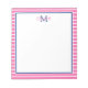 Ce mignon bloc-notes monogrammé présente des rayures roses et blanches préppantes avec un monogramme bleu marine classique. Personnalisez le monogramme avec votre choix de nom et d'initiale.