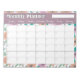 Monthly planner notepad with a big bright flowers pattern on light background.
