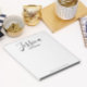 Bloc-notes moderne, tendance et féminin noir et blanc avec vos prénoms et vos noms en haut. Vos coordonnées sont en bas.