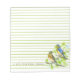 Un bloc-notes personnalisé vert bordé décoré de bleuets mâles et femelles dans un arbre Hawthorn en floraison au printemps, dessiné avec de l'encre et de l'aquarelle. Inspiré par l'oiseau d'Etat et la fleur d'Etat du Missouri. Très agréable pour les rappels ou le cadeau d'un enseignant.