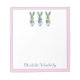 This Easter notepad features cute bunny rabbit green topiaries with pink, blue and yellow bows in blue and white chinoiserie flowerpots. Personalize with your choice of name or special holiday text.