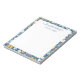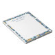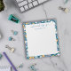 Floral du bureau du bloc-notes en blanc avec une bordure avec un motif de fleurs en bleu avec des fleurs jaunes, roses, blanches et bleu pâle. Du bureau de est écrit dans un joli script avec votre nom sous le bleu.