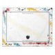 Brosses rouges, jaunes et bleues avec éclaboussure de peinture noire et pomme. Personnalisez avec le nom de l'enseignant.