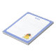 Mignons bloc-notes avec l'illustration d'un canard jaune portant un casquette parapluie coloré nageant sur un étang sous la pluie, dans le coin inférieur droit. Un espace d'écriture blanc avec des lignes bleues sur un arrière - plan bleu. En haut des blocs-notes en bleu, il y a les notes de mots, c'est un modèle qui peut être utilisé tel quel ou remplacé par votre texte en ligne à l'aide de la zone de texte.