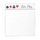 Ce bloc-notes a un graphique de pique, diamants, clubs et coeurs avec le texte qui dit "Jouons" Idéal pour le poker, canasta, pont, gin rummy, et tous les autres jeux de cartes