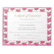 Créée à partir d'un carnet d'autographes, cette pile de certificats de réussite serait une grande amélioration pour votre organisation ou concours à distribuer à plusieurs participants ou qualificatifs. Une belle façon de montrer son soutien et des félicitations à tous ceux qui sont entrés. Montré avec des bordures de roses roses rose avec une couleur dorée claire de "certificat de réussite" en haut sous les roses et tout le texte correspondant que vous auriez besoin sur blanc avec corps de texte gris. A une fine bordure intérieure de rose. Vous devez Customiser la zone de texte centrale de cet élément.
