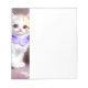 Bloc-note Chat blanc avec collier de fleurs violettes