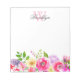 Élégant Design Chic Girly Script rose Purple Jaune Floral Botanique Personnalisé Monogramme Nom Notepad. Design girly romantique avec monogramme initial et lettré à la main script de prénom de style de police et une aquarelle printemps/été botanique fleurit rose violet rose rose roses roses jaune avec arrangement feuille vert. Idée cadeau parfaite, jolie féminine pour les affaires, professionnels ou toute occasion.