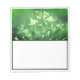 Clover Rare Six Leaf Notepad en Vert Couleur avec feuillage de l'artiste Jason Girard qui présente un rare trèfle de six feuilles avec feuillage sur bloc-notes avec quatre trèfles de feuilles représentant la foi, l'espoir, l'amour, la chance et les cinquième et sixième feuilles représentant l'argent et la longévité.