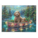 Jetez un coup d'oeil à la magie de la saison des Fêtes avec cette illustration magnifiquement détaillée, montrant un chien fier assis dans un bateau à la décoration festive, glissant à travers un lac serein de Noël. Les lumières scintillantes des pins voisins se reflètent dans l'eau, projetant une lumière chaude et festive qui renforce l'ambiance cosy. Des ornements pendent des côtés du bateau, tandis que des lanternes brillantes éclairent le chemin, créant une scène qui capture l'essence véritable de la chaleur et de la joie de Noël. Cette oeuvre nostalgique apporte une touche de magie de vacances à tout espace, parfait pour ceux qui chérissent l'esprit de la saison.