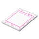Bloc-notes personnalisable de 5,5 po x 6 po avec une image de coeurs roses fantaisistes sur blanc derrière un carré blanc avec une bordure rose. Voir carnet correspondant. Consultez la collection complète du Bloc-notes de la Saint-Valentin dans la catégorie BUREAU de la section VACANCES.