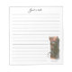 A beautiful black lizard climbing a rusty orange tree trunk with grey bark. His wears tiny golden spots that are wrapped all around his body, while his head is doused with a splash of ultramarine blue and golden yellow shades under his neck. "Just a note" is at the top of the note pad.