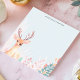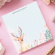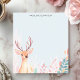 Ajoutez une touche de boiserie fantaisie à vos notes avec cet adorable bloc-notes personnalisé. Un faon sucré avec des bois proéminents se dresse au milieu d'un arrangement doux de feuillage pastel. L'arrière - plan clair et muet donne une touche douce et naturelle. Customisez ce bloc-notes avec votre propre texte. Idéal pour les amoureux de la nature, les enfants ou toute personne qui apprécie une touche de charme.
