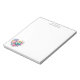 A notepad with a beautiful illustration. A heart-shaped bouquet of flowers in pastel blue, green, purple and yellow. With a lovely blue butterfly hovering in front.