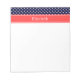 Motif de point Polka bleu et blanc de la Marine, Étiquette de ruban rouge de corail Customisez ceci avec votre nom, monogramme ou autre texte. Vous pouvez également modifier les polices, ajuster la taille des polices et les couleurs des polices, déplacer le texte, etc. Besoin de ce motif dans d'autres couleurs ou designs ? Il suffit de nous envoyer un email et de nous le faire savoir ! Veuillez noter qu'il s'agit d'un design graphique numériquement qui est transféré au produit sous-jacent. Le design lui-même ne contient pas de ruban, étiquettes, métaux, gaufrage, etc. 2013 ©FantabulousPatterns Tous droits réservés