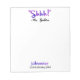 Drôle Chut Personnalisé ! Note de devis du bibliothécaire scolaire Pad of Paper. L'aquarelle couleur brun violet lettrage dit "Shhh !" entre guillemets. Personnalisez avec le nom et le nom de l'école du bibliothécaire sur ces blocs-notes amusants. Bibliothécaire écrit en joli violet et bleu aquarelle style brushstrokes. Des idées cadeaux modernes et tendance pour les bibliothécaires de l'école. Faites un cadeau d'humour de bibliothèque tranquille pour votre bibliothécaire préféré.