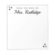 Bloc-notes blanc imprimé avec de petites étoiles noires, parfait pour les enseignants. Ajoutez votre nom dans un joli script de calligraphie.