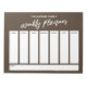 Ce planificateur hebdomadaire polyvalent a été configuré avec des éléments très basiques qui peuvent tous être édités... sauf pour l'en-tête. L'expression "planificateur hebdomadaire" a été rendue dans une police d'écriture décontractée moderne et a été placée, sous forme de graphique, en haut de la page. Utilisez les champs modèle pour ajouter vos détails selon vos besoins. Changez aussi les couleurs ou d'autres polices, si vous voulez!
