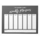 Ce planificateur hebdomadaire polyvalent a été configuré avec des éléments très basiques qui peuvent tous être édités... sauf pour l'en-tête. L'expression "planificateur hebdomadaire" a été rendue dans une police d'écriture décontractée moderne et a été placée, sous forme de graphique, en haut de la page. Utilisez les champs modèle pour ajouter vos détails selon vos besoins. Changez aussi les couleurs ou d'autres polices, si vous voulez!